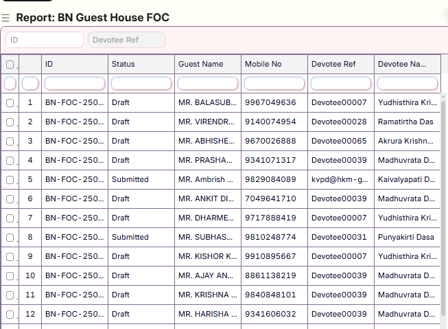 We also have a report for BN Guest House FOC, which displays all pending, approved, and draft FOC requests.