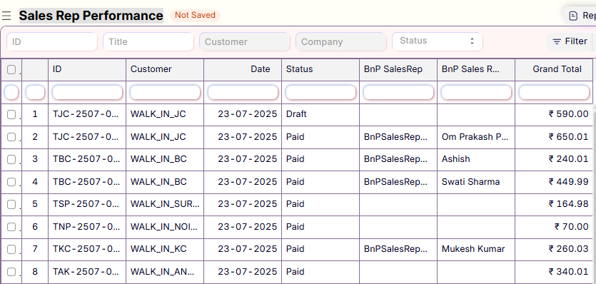 Search Sales Rep Performance in the search bar.