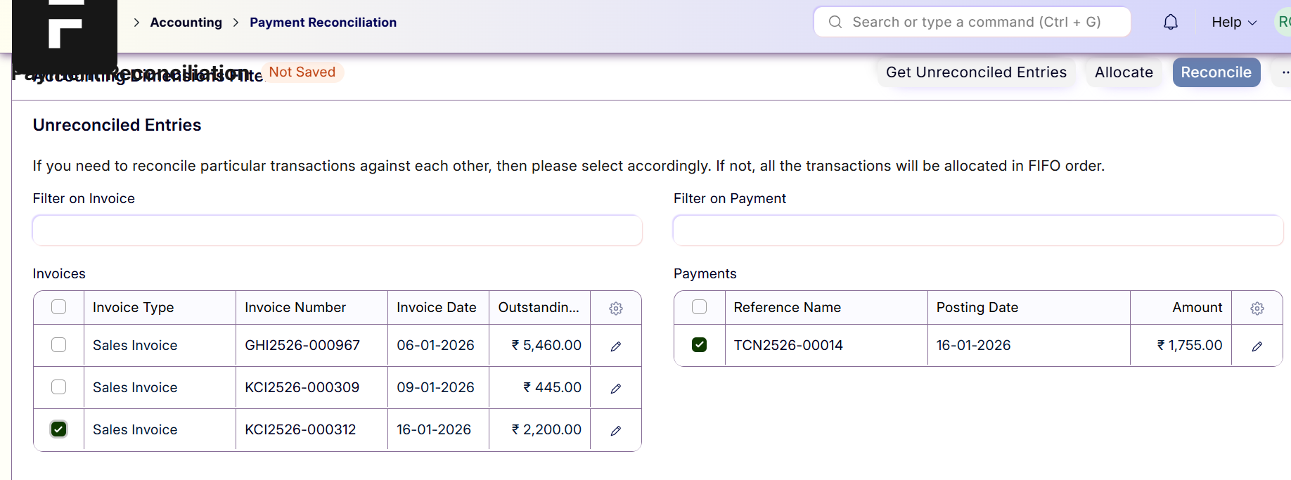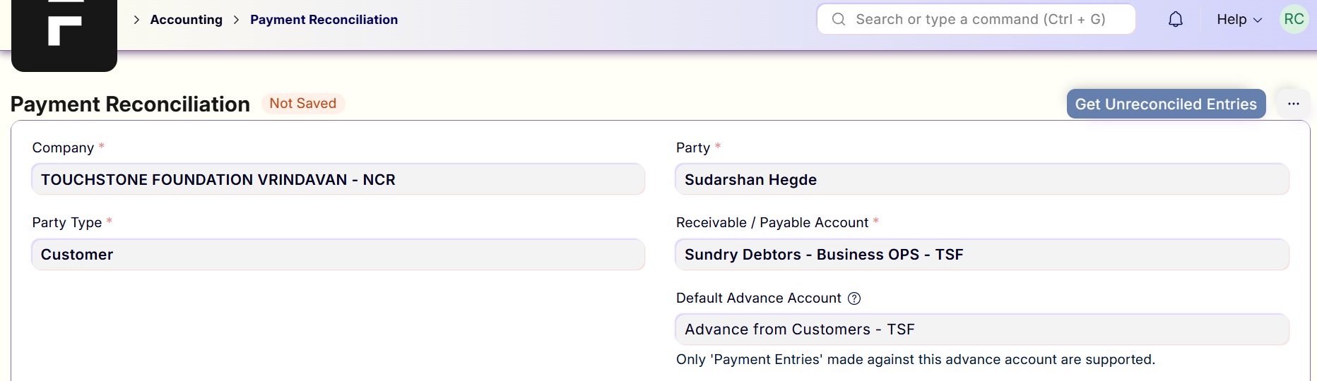 - Search Payment Reconciliation