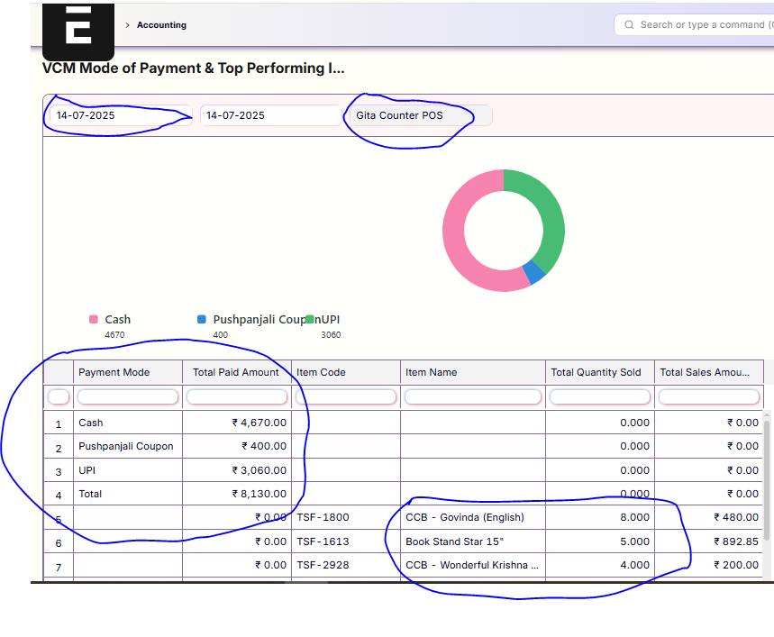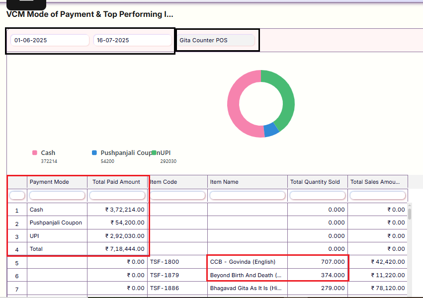 VCM Mode of Payment & Top Performing Items Report is specifically designed to analyze sales from the POS counter within a defined time frame.